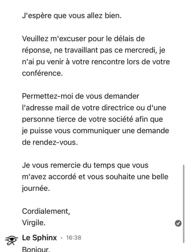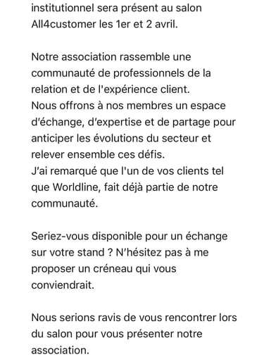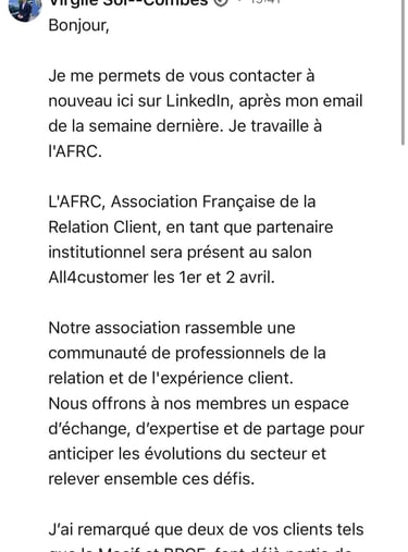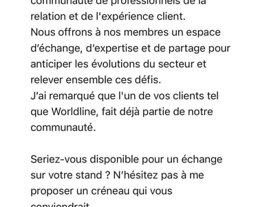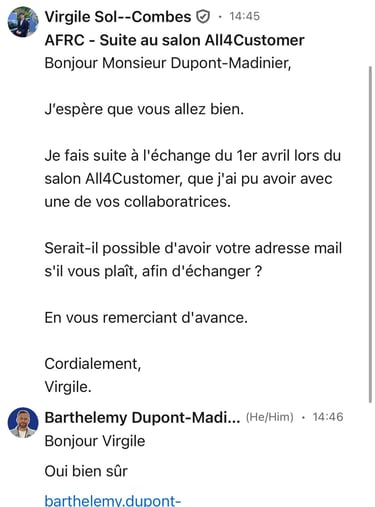 Suivi et gestion de conversations pour la prise de contact avec entreprises et partenaires.