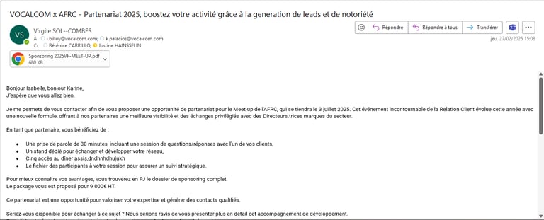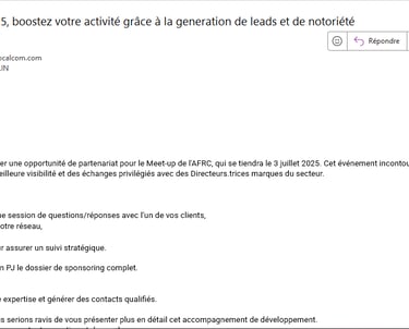 Rédaction et mise en forme d’un mail de partenariat et de recherche de sponsors.