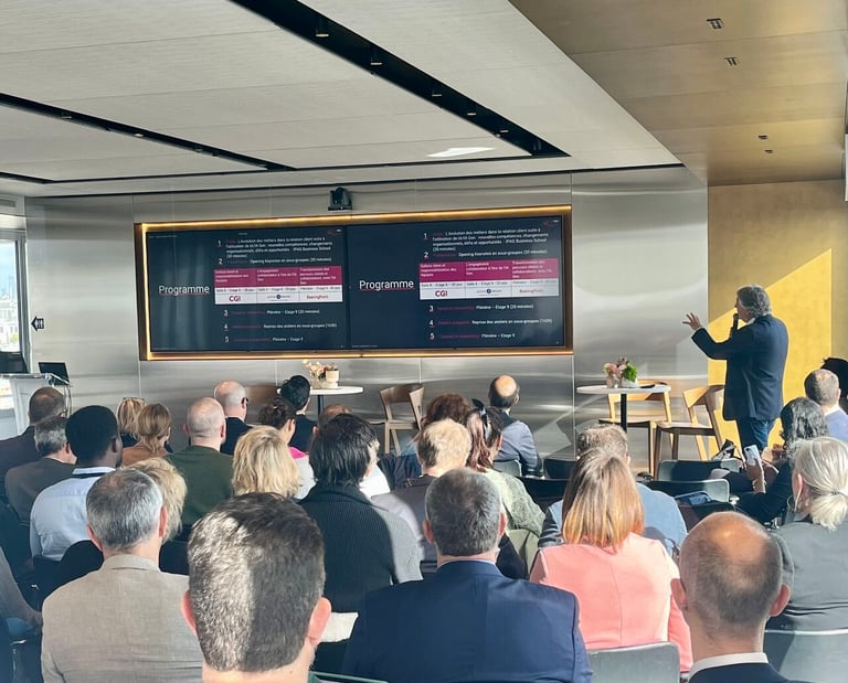Création d’un visuel professionnel de signature pour les échanges LinkedIn et l’équipe.